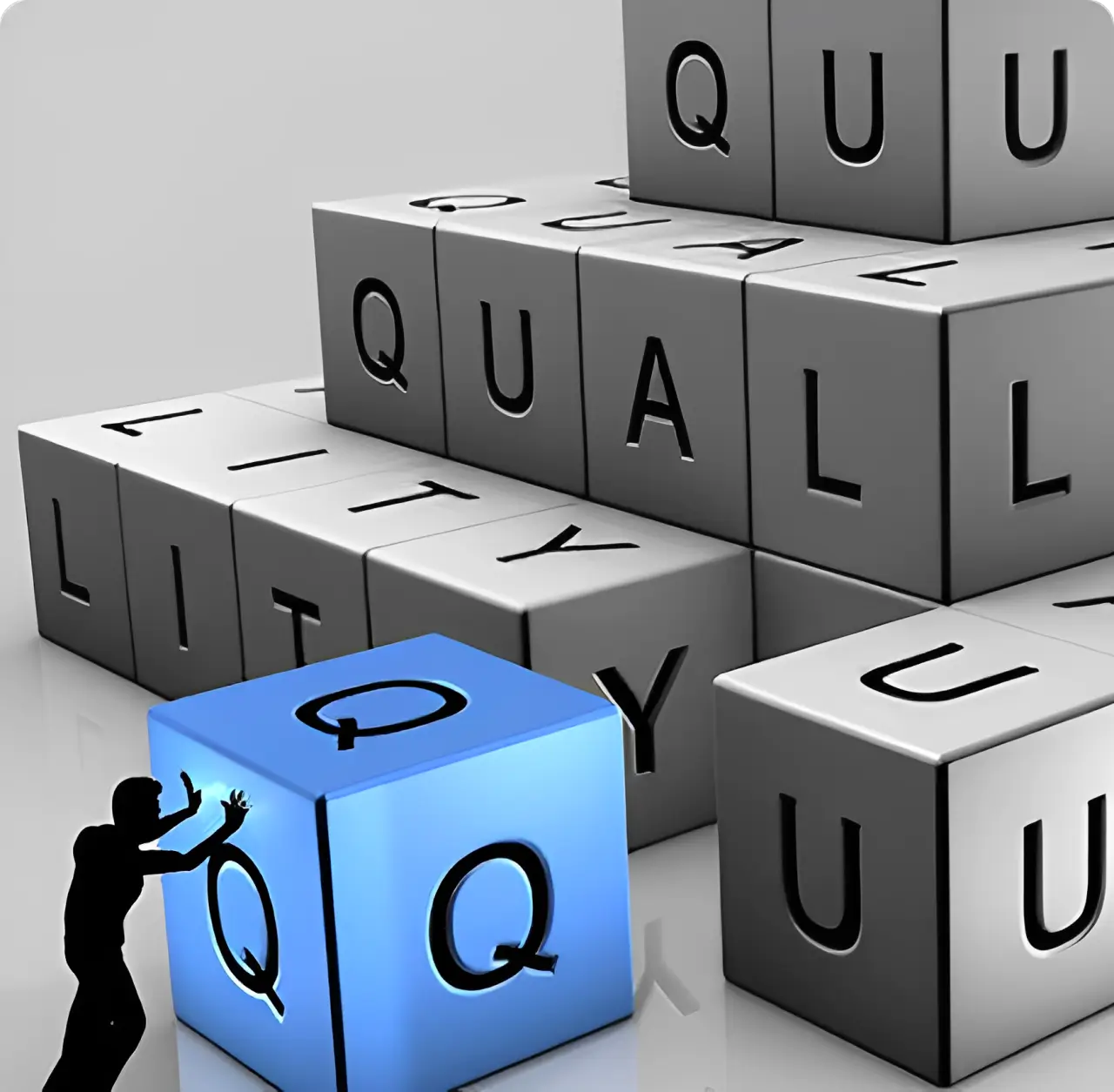Person placing block on quality pyramid.